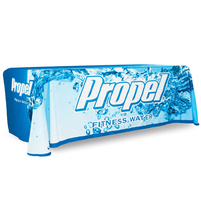 Keywords: 8ft table throw, trade show table cover, custom table throw, stretch table throw, trade show display, vibrant printing, durable table cover.